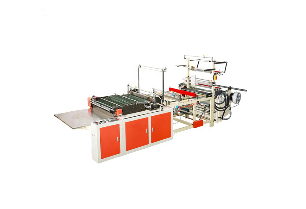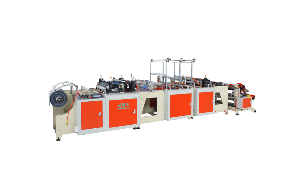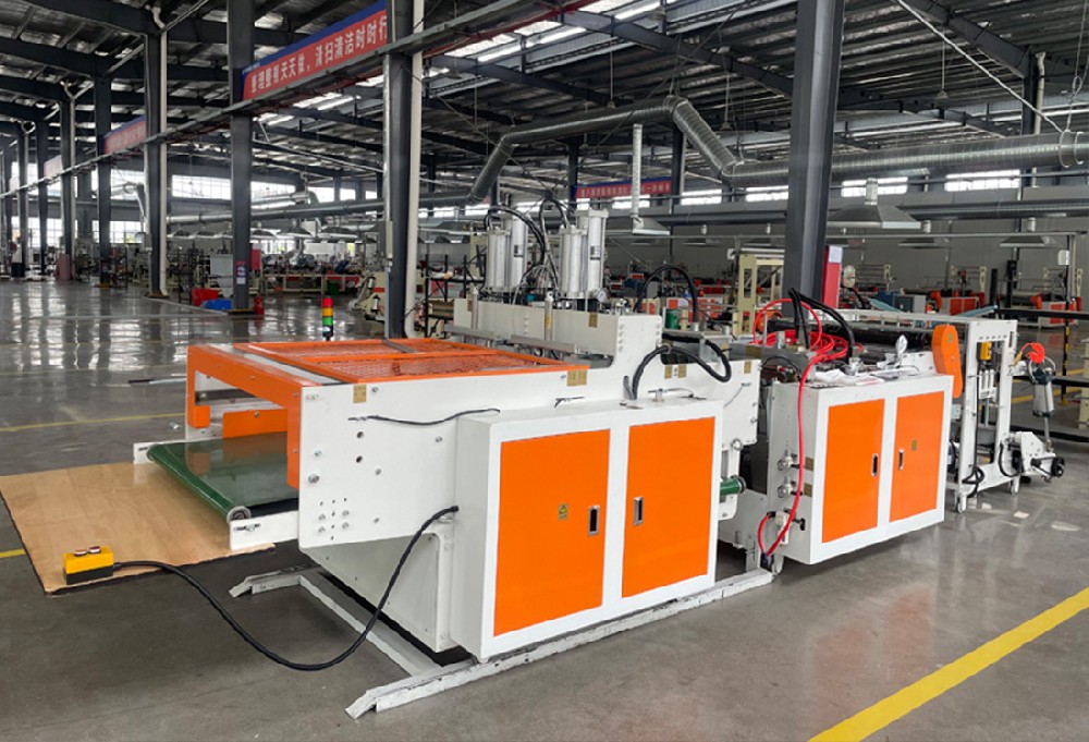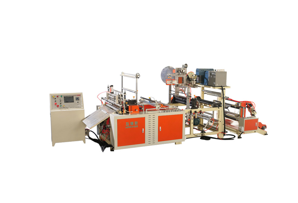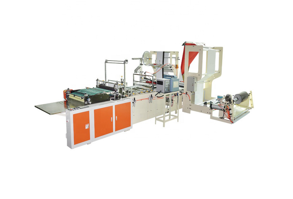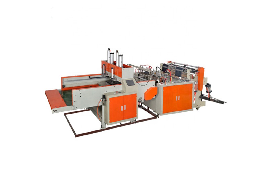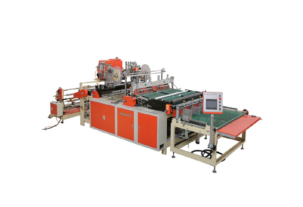 此機(jī)器用于背心袋制作,電腦同服控制,可減少制袋機(jī)損耗,配訂本裝置,具有一次成型和全自動(dòng)輸送帶人性化出料,易于整理打包,提高生產(chǎn)效率,具有無(wú)料、斷料自動(dòng)停機(jī)功能。