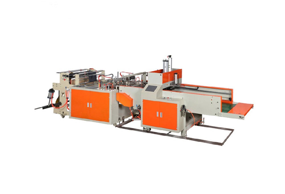 此機(jī)器用于雙條背心袋制作,電腦服控制,可減少制袋機(jī)損耗,配訂本裝置,具有一次成型和全自動(dòng)輸送帶人性化出料,易于整理打包,提高生產(chǎn)效率,具有無(wú)料、斷料自動(dòng)停機(jī)功能。
