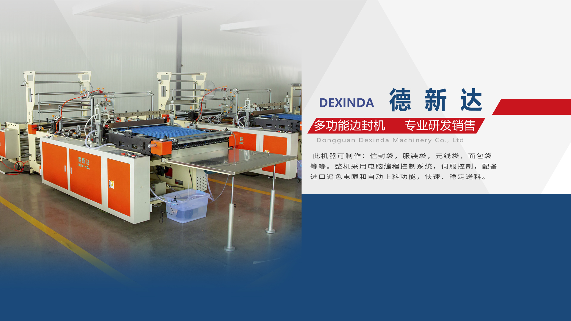 江西德新達(dá)智能機(jī)械有限公司是中國(guó)目前集“產(chǎn)、研、銷(xiāo)”一體的智能包裝機(jī)械全產(chǎn)業(yè)鏈生產(chǎn)廠(chǎng)家,同時(shí)也是國(guó)家級(jí)高新技術(shù)和省精專(zhuān)特新企業(yè)。核心產(chǎn)品定位為智能包裝機(jī)械研發(fā)、整機(jī)生產(chǎn)與銷(xiāo)售,可降解包裝材料的研發(fā)與應(yīng)用。德新達(dá)坐落于具有光榮革命傳統(tǒng)的紅色故土江西贛州尋烏縣,擁有超過(guò)4萬(wàn)平方米的現(xiàn)代化車(chē)間廠(chǎng)房,年產(chǎn)銷(xiāo)各類(lèi)環(huán)保智能包裝設(shè)備數(shù)千臺(tái),以東莞為市場(chǎng)窗口,開(kāi)展研發(fā)和銷(xiāo)售;立足于江西尋烏,以“德新達(dá)智能機(jī)械產(chǎn)業(yè)園”為生產(chǎn)基地,專(zhuān)注于環(huán)保降解型吹膜機(jī)、多層共擠吹膜機(jī)、降解型制袋機(jī)、高速快遞袋制袋機(jī)、工業(yè)塑料袋制袋機(jī)與環(huán)保塑料包裝產(chǎn)品的研發(fā)、制造與銷(xiāo)售。自成立以來(lái),德新達(dá)一直秉承“專(zhuān)業(yè)化、綠色化”的發(fā)展道路,以其領(lǐng)先的技術(shù)開(kāi)發(fā)水平、過(guò)硬的產(chǎn)品質(zhì)量、全程一體化的服務(wù)贏(yíng)得了市場(chǎng)的高度認(rèn)可。更先后與南昌工程學(xué)院建立博士工作站,同時(shí)與湖南工業(yè)大學(xué)等大專(zhuān)院校共同建立工程研發(fā)中心,不斷升級(jí)核心技術(shù),優(yōu)化生產(chǎn)工藝優(yōu)化創(chuàng)新,研發(fā)出速度更快、自動(dòng)化程度高的新機(jī)型,持續(xù)滿(mǎn)足全球?qū)τ谥悄馨b機(jī)械設(shè)備的需求,目前擁有6項(xiàng)發(fā)明專(zhuān)利及20項(xiàng)發(fā)明專(zhuān)利。